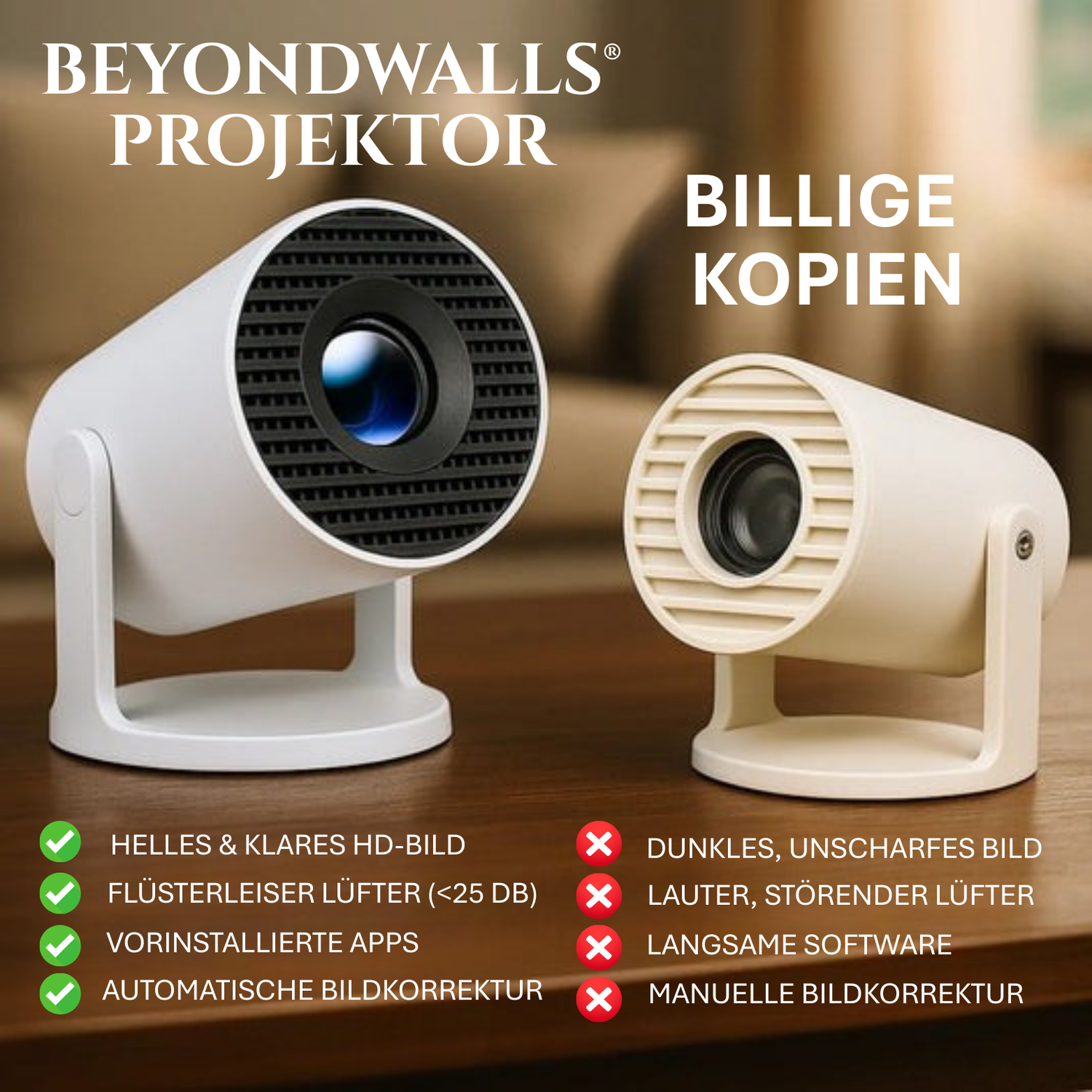 Seit der BeyondWalls Projektor große Aufmerksamkeit bekommt, tauchen vermehrt ähnliche Produkte auf. Viele sehen gleich aus – liefern aber nicht das gleiche Erlebnis.